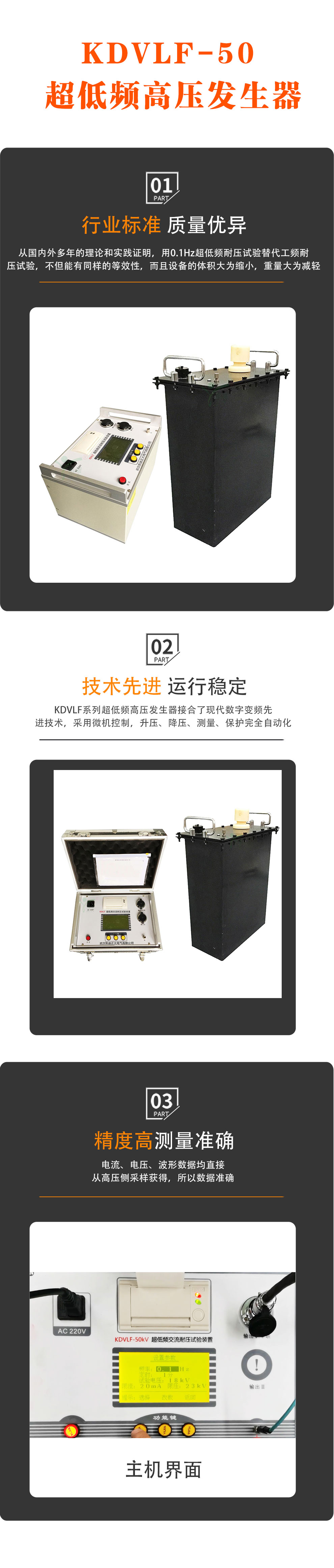 KDVLF-80 超低頻高壓發(fā)生器主要用于電力部門對PE(聚乙烯)/XLPE(交聯聚乙烯)等塑料電力電纜的非破壞性絕緣耐壓試驗,具有電源過流、高壓過流、油箱過熱保護功能,輸出調壓器不回零高壓不能啟動等功能,是傳統(tǒng)工頻耐壓試驗設備的換代。KDVLF系列超低頻高壓發(fā)生器接合了現代數字變頻新的技術,采用微機控制,升壓、降壓、測量、保護自動化,并且在自動升壓過程中能進行人工干預。由于電子化,所以體積小重量輕、大屏幕液晶顯示,清晰直觀、且能顯示輸出波形、打印機輸出試驗報告。