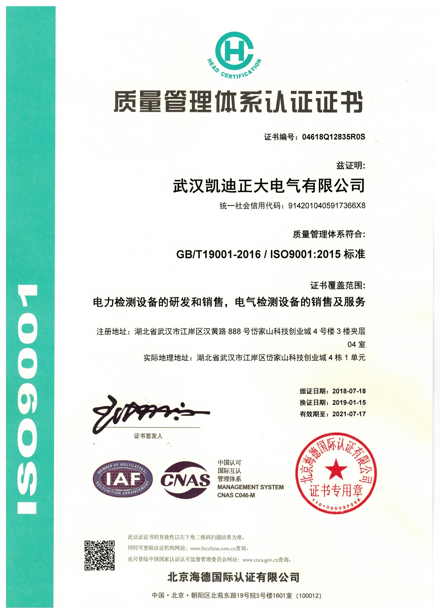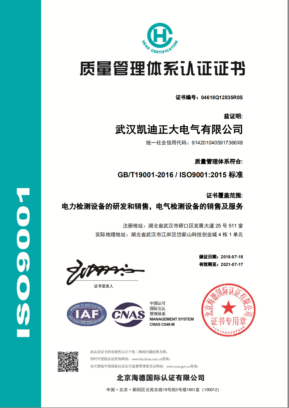 中國合格評定國家認可委員會-凱迪正大證書