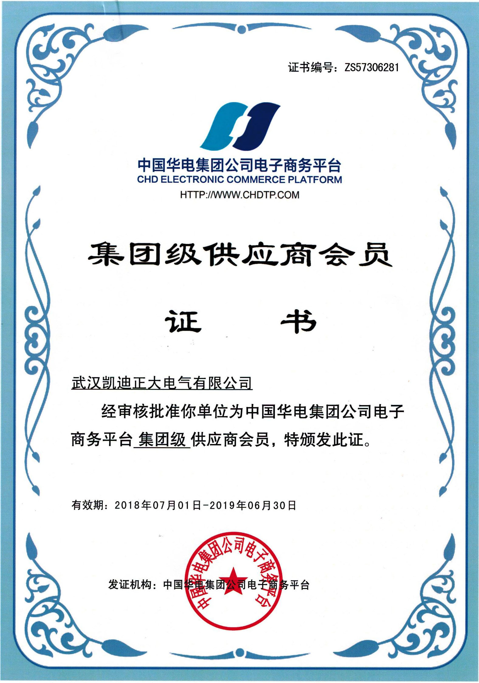中國華電集團“集團級供應商會員”