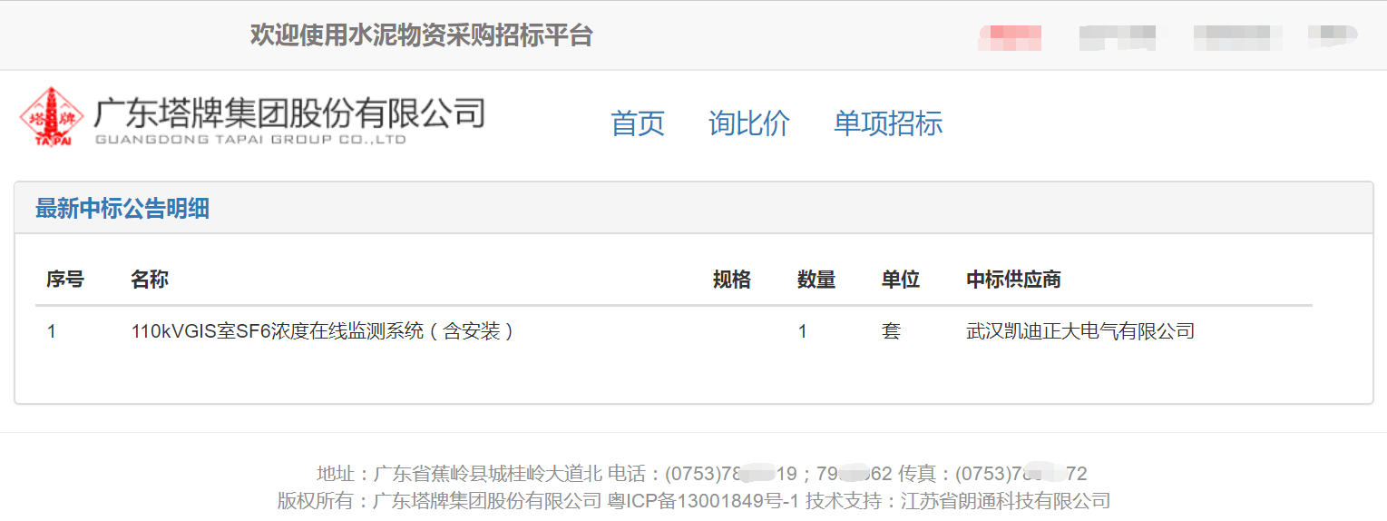 中標(biāo)廣東塔牌集團(tuán)SF6濃度在線監(jiān)測系統(tǒng)