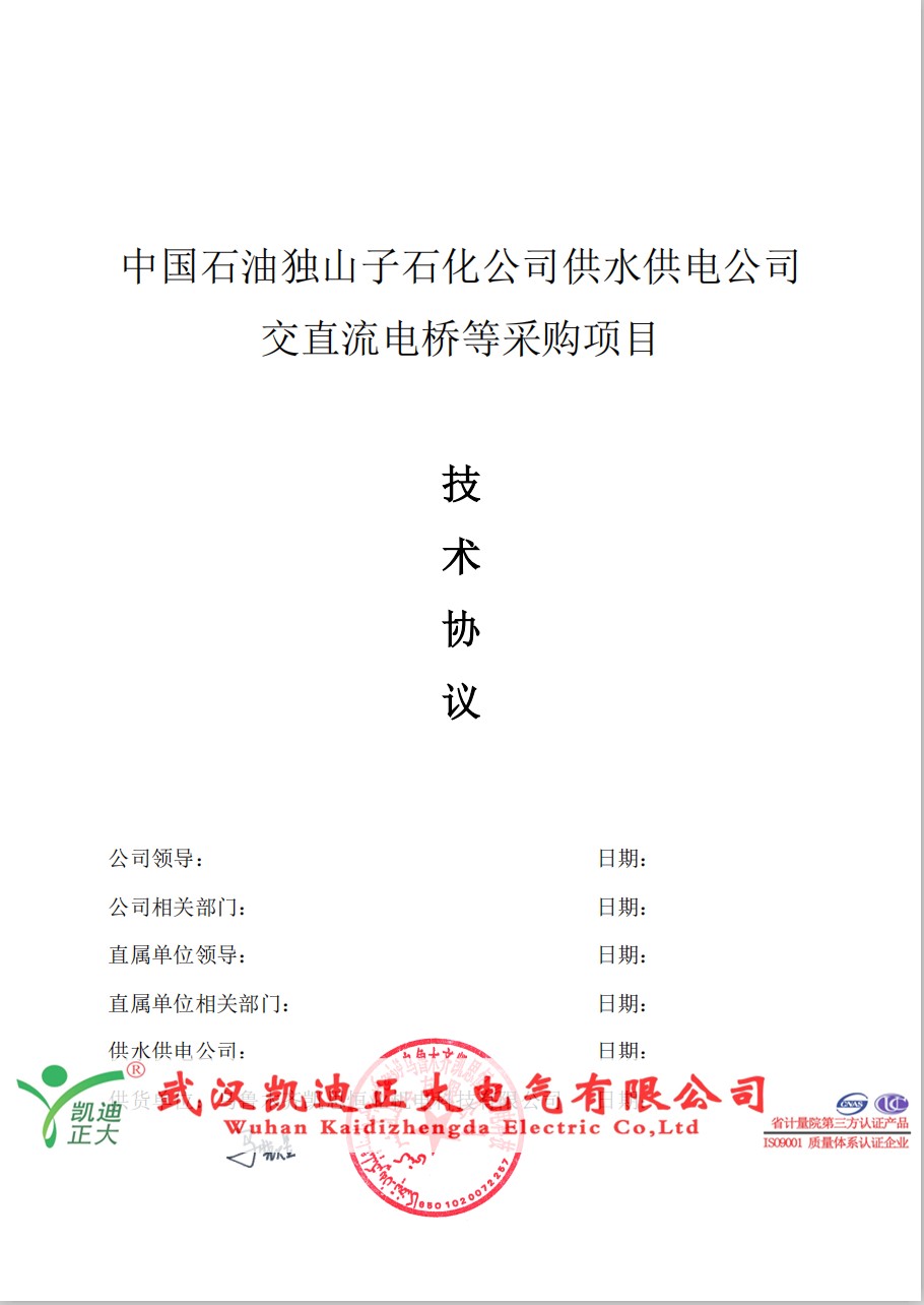 賀凱迪正大公司中標中國石油獨山子石化公司供水供電公司交直流電橋等采購項目