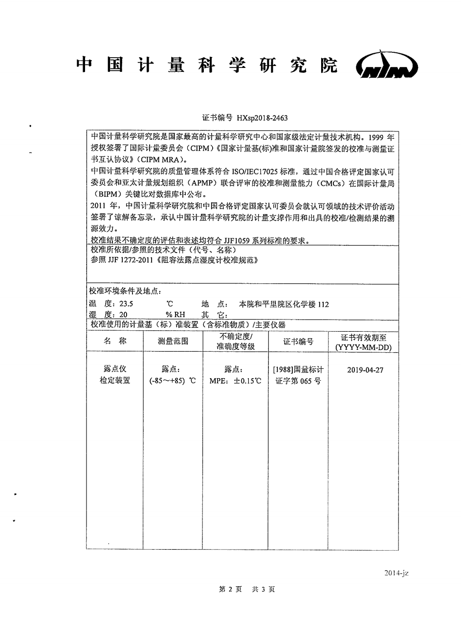 我司高精度露點(diǎn)儀獲得中國(guó)計(jì)量科學(xué)研究院檢測(cè)合格