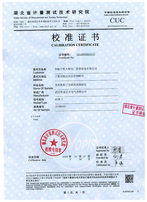 武漢凱迪正大KDZK-F發電機轉子交流阻抗測試儀校驗證書