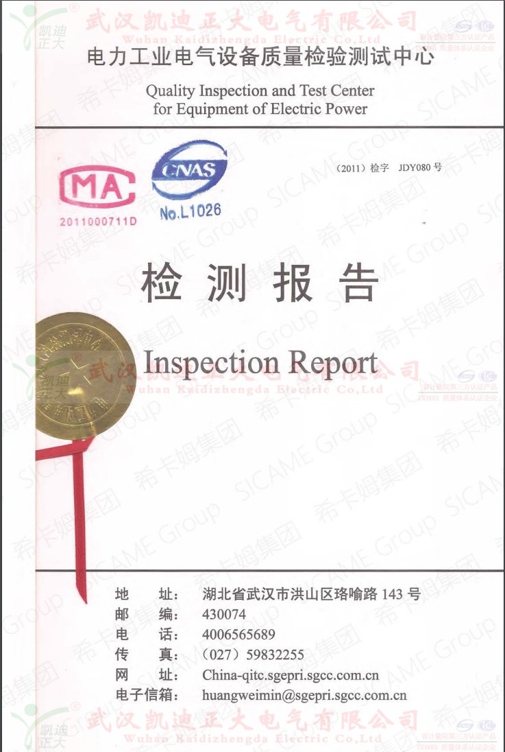 架空配電線路設(shè)備獲得武高所質(zhì)量檢驗(yàn)中心報告