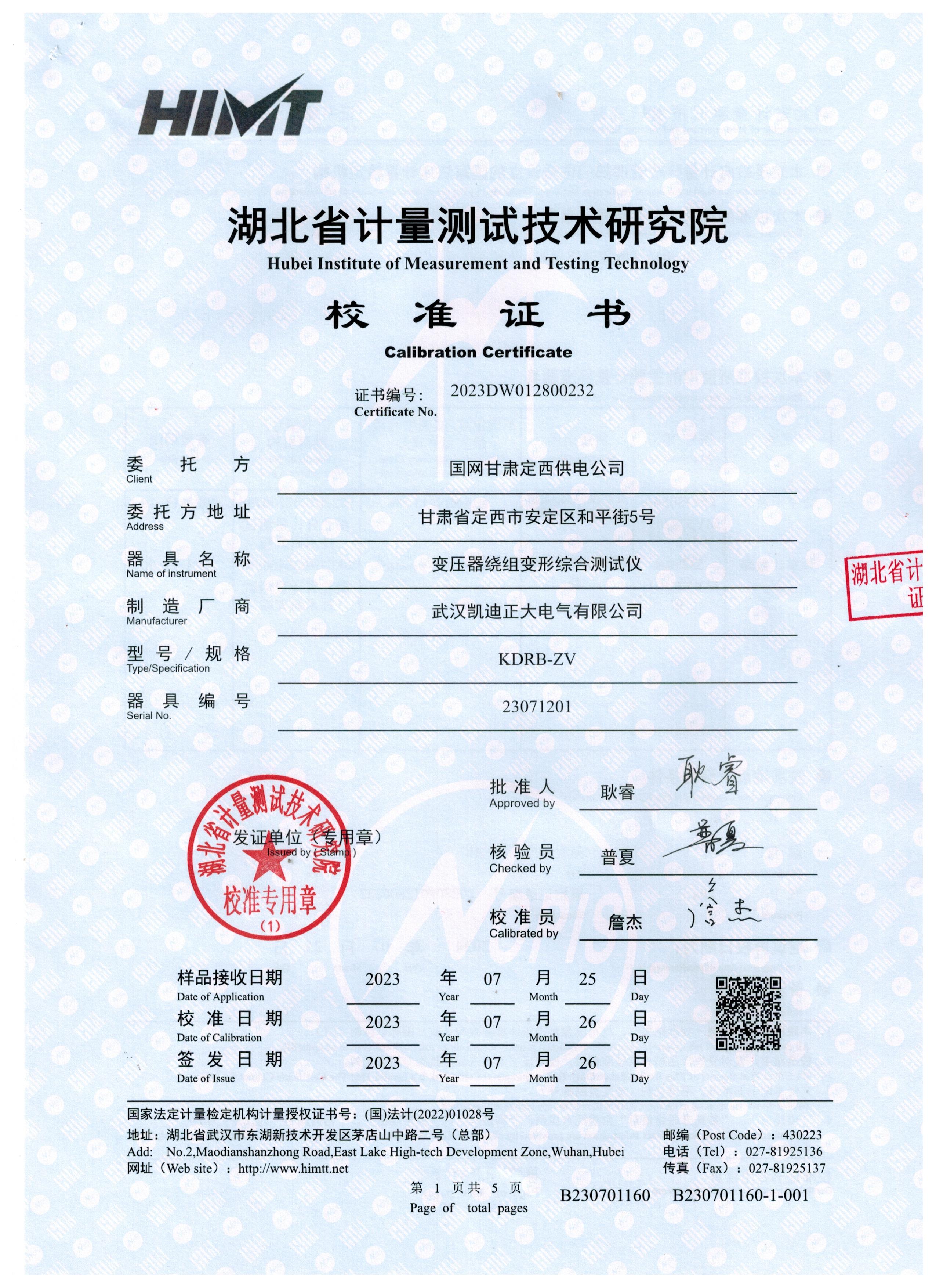 KDRB-ZV變壓器繞組變形綜合測(cè)試儀特性及技術(shù)參數(shù)獲得湖北省計(jì)量測(cè)試技術(shù)研究院的校準(zhǔn)證書(shū),設(shè)備為電力工業(yè)電氣設(shè)備質(zhì)量檢驗(yàn)測(cè)試中心的要求。