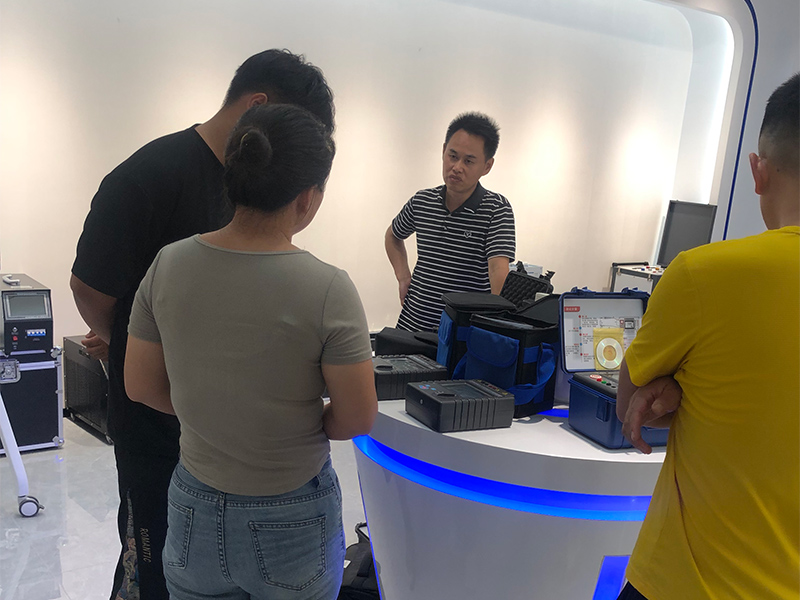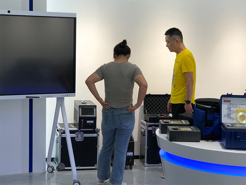 在我公司趙總與王工的陪同下,安徽某電力公司代表首先參觀了寬敞明亮的設備展廳。這里陳列著各類電力檢測設備,趙總與王工對展廳陳列的設備做了大致的講解。并對三相繼電保護測試儀、變壓器容量測試儀及變頻抗干擾介質損耗測試儀進行了細致介紹。