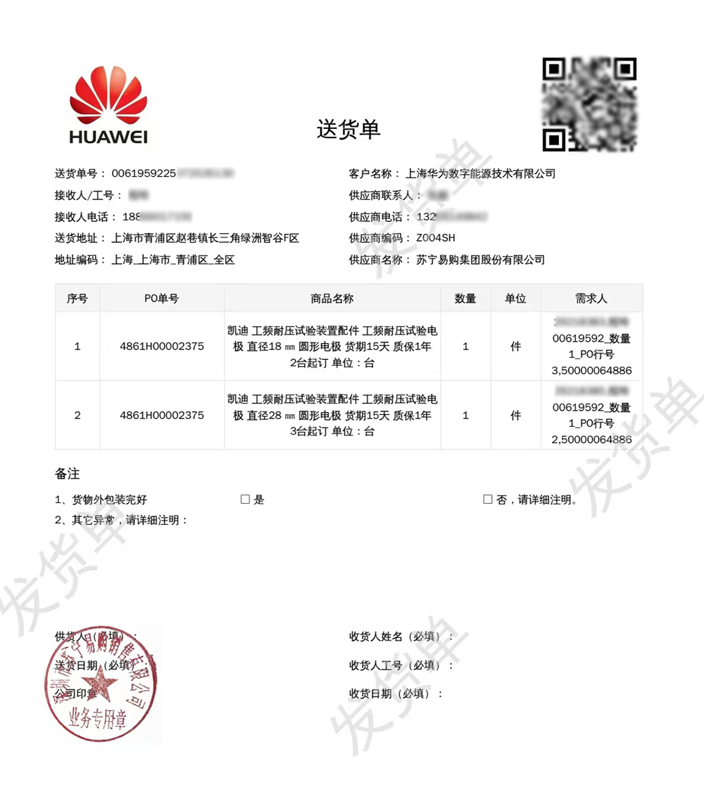 能夠?yàn)樯虾HA為數(shù)字能源技術(shù)有限公司供貨,充分彰顯了武漢凱迪正大的實(shí)力。華為在供應(yīng)商選擇上有著嚴(yán)格的標(biāo)準(zhǔn),對(duì)產(chǎn)品的質(zhì)量、技術(shù)性能、可靠性等方面都有著高要求。武漢凱迪正大憑借其在工頻耐壓試驗(yàn)裝置及電極領(lǐng)域多年的技術(shù)積累、成熟的生產(chǎn)工藝和完善的質(zhì)量管理體系,通過(guò)了華為嚴(yán)格的供應(yīng)商資質(zhì)審核。公司不僅擁有生產(chǎn)設(shè)備和檢測(cè)儀器,還建立了一支專業(yè)的研發(fā)團(tuán)隊(duì),持續(xù)進(jìn)行技術(shù)創(chuàng)新和產(chǎn)品升級(jí),以滿足市場(chǎng)不斷變化的需求。